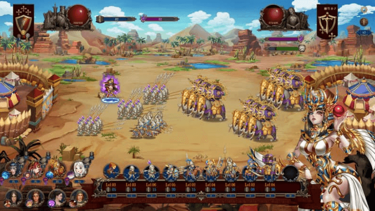 玩家要建设起经济体系,保证稳定;同时又要升级作战单位,招募美貌善战的女将,与她们一起击败魔龙龙帝国。