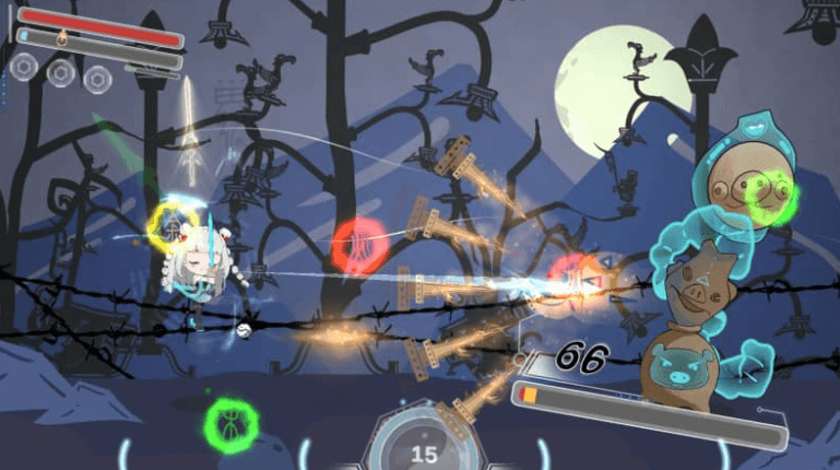 游戏有独特的玩法X灵药,这是一款微节奏轻回合制弹幕射击游戏~