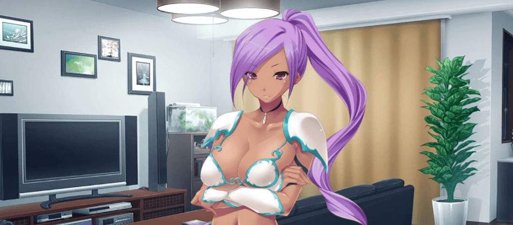 一个穿着泳装铠甲,肌肤有点儿黑的黑暗精灵!